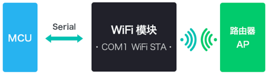该模式下(STA模式),通过设置,将COM1的数据与WIFI的数据相互转换。