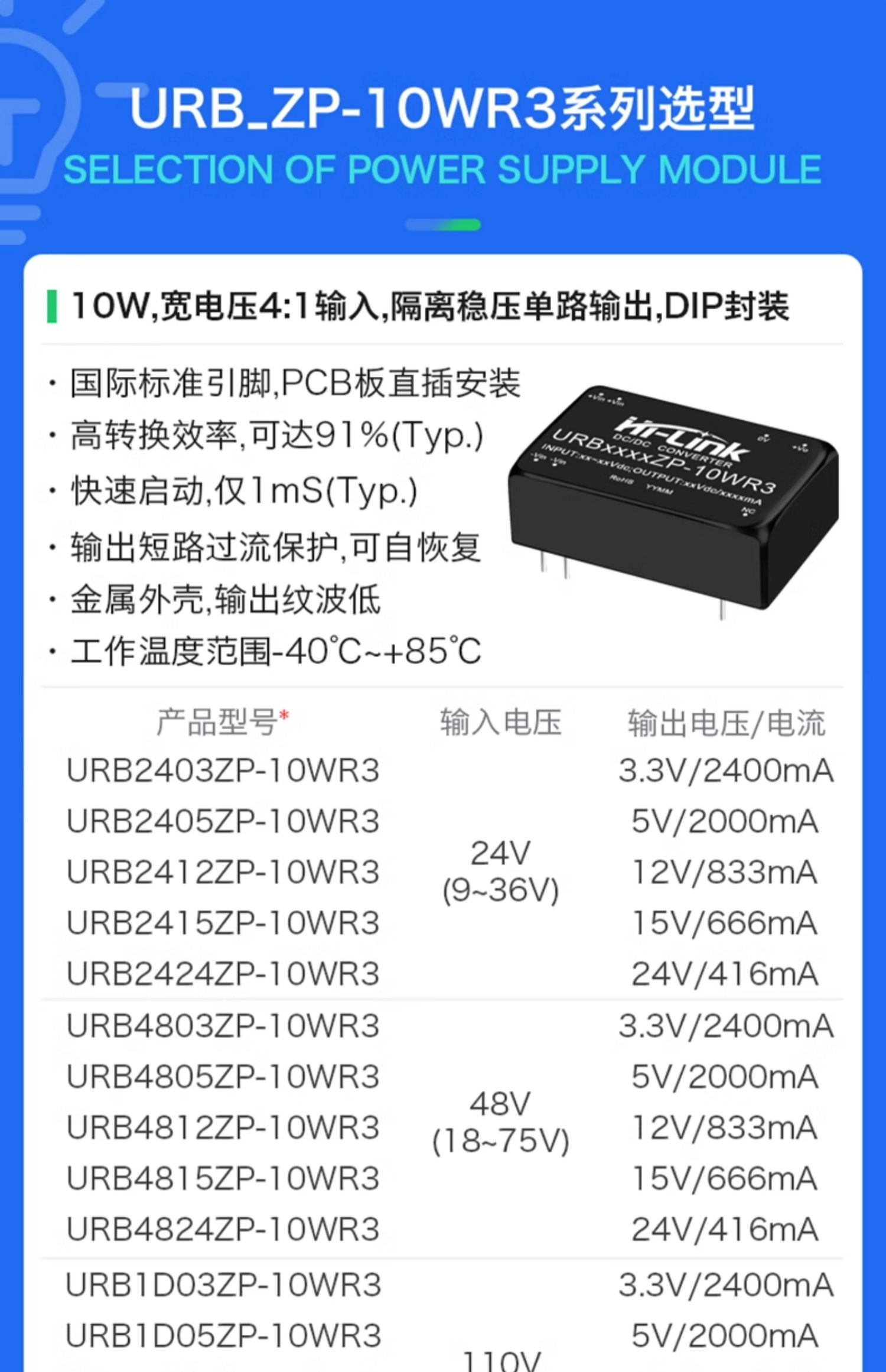 DC/DC 电源模组 | HLK-UR(A)B ZP-10WR3
