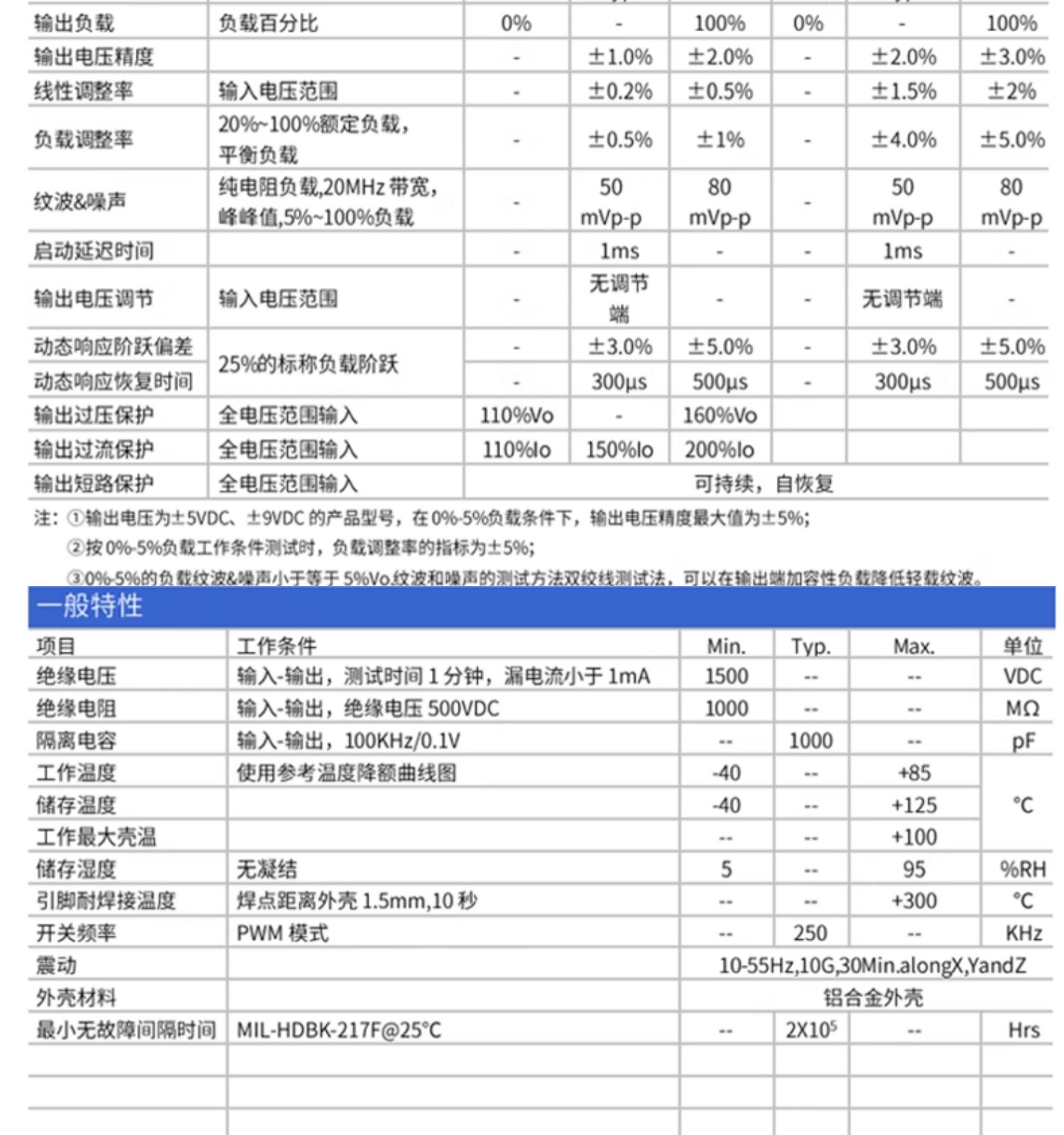 工作温度范围:-40°C~+85°C输入欠压保护,输出短路,过流,过压保护