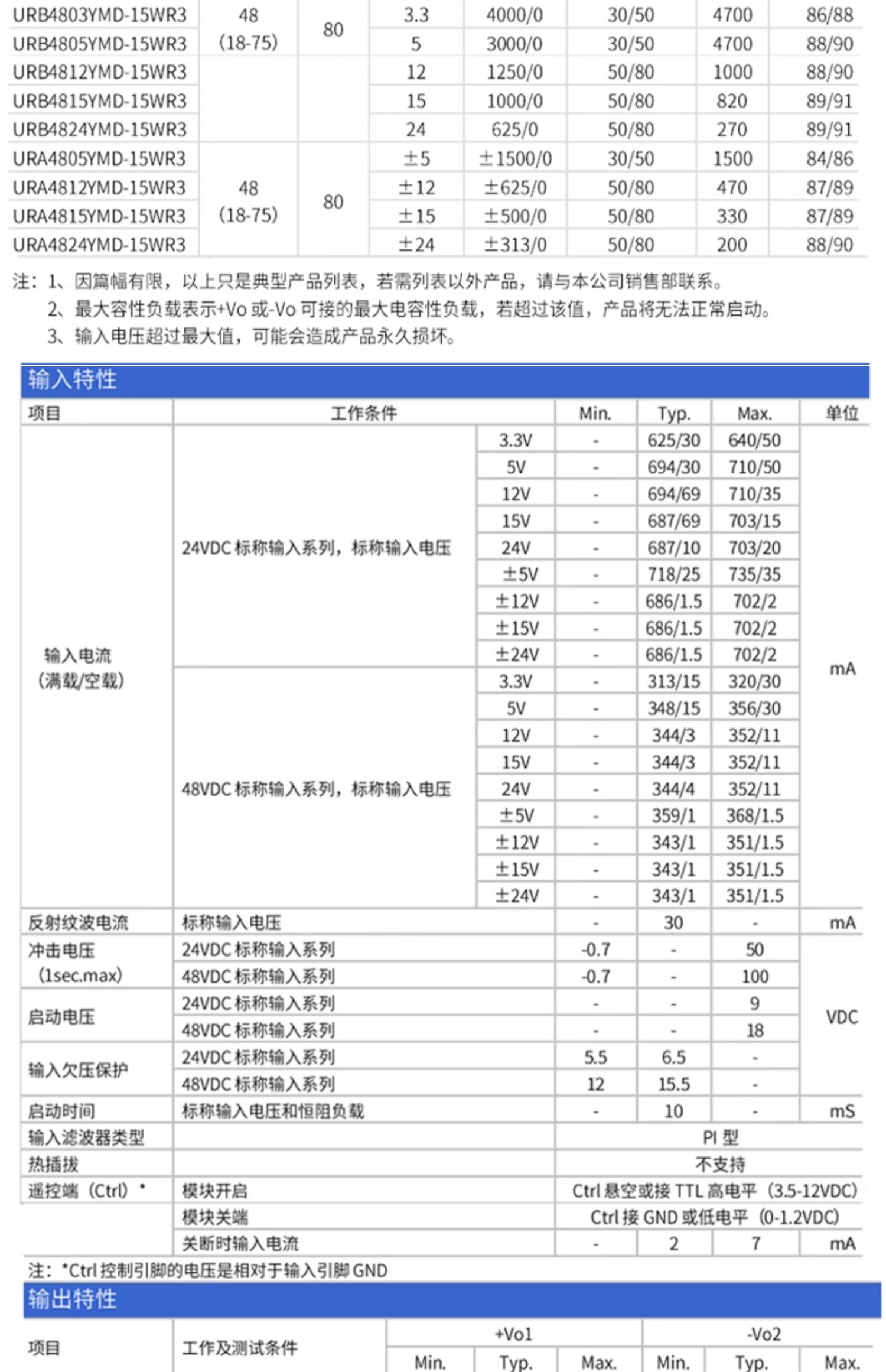 UR(A)B_YMD-15WR3 系列产品输出功率为 15W,4:1宽电压输入范围,效率高达 91%,1500VDC的常规隔离电压,允许工作温度-40°Cto +85?℃,具有输入欠压保护,输出过压、过流、短路保护功能,裸机满足 CISPR32/EN55032CLASSA,广泛应用于医疗、工控、电力、仪器仪表、通信、铁路等领域。