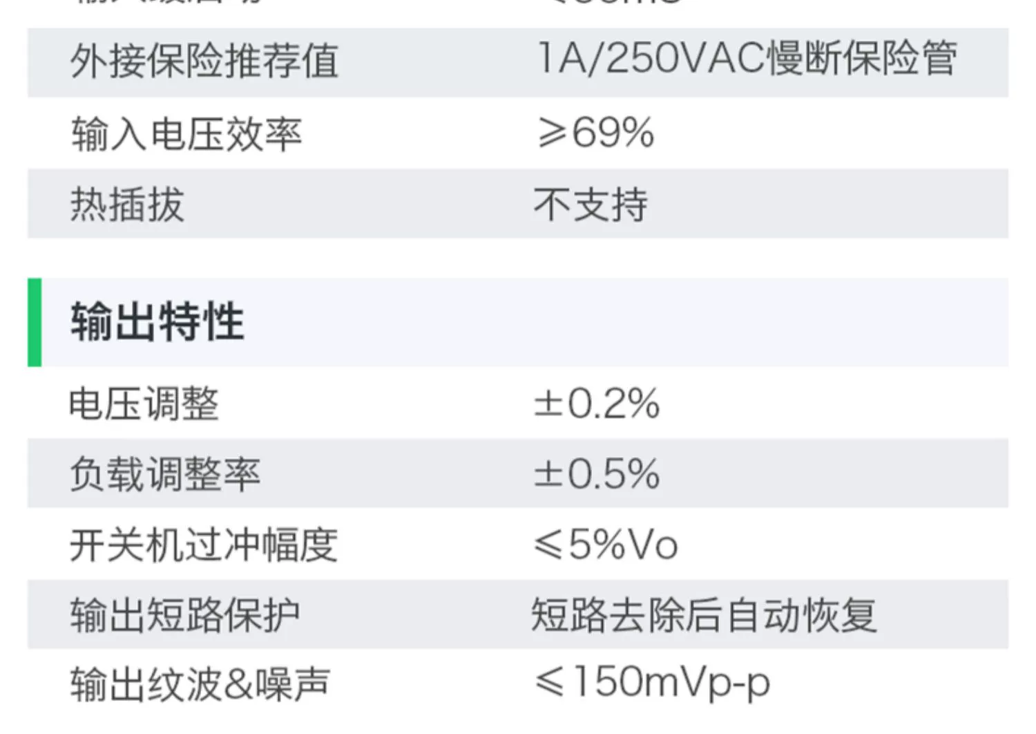 良好的输出短路和过流保护并可自恢复