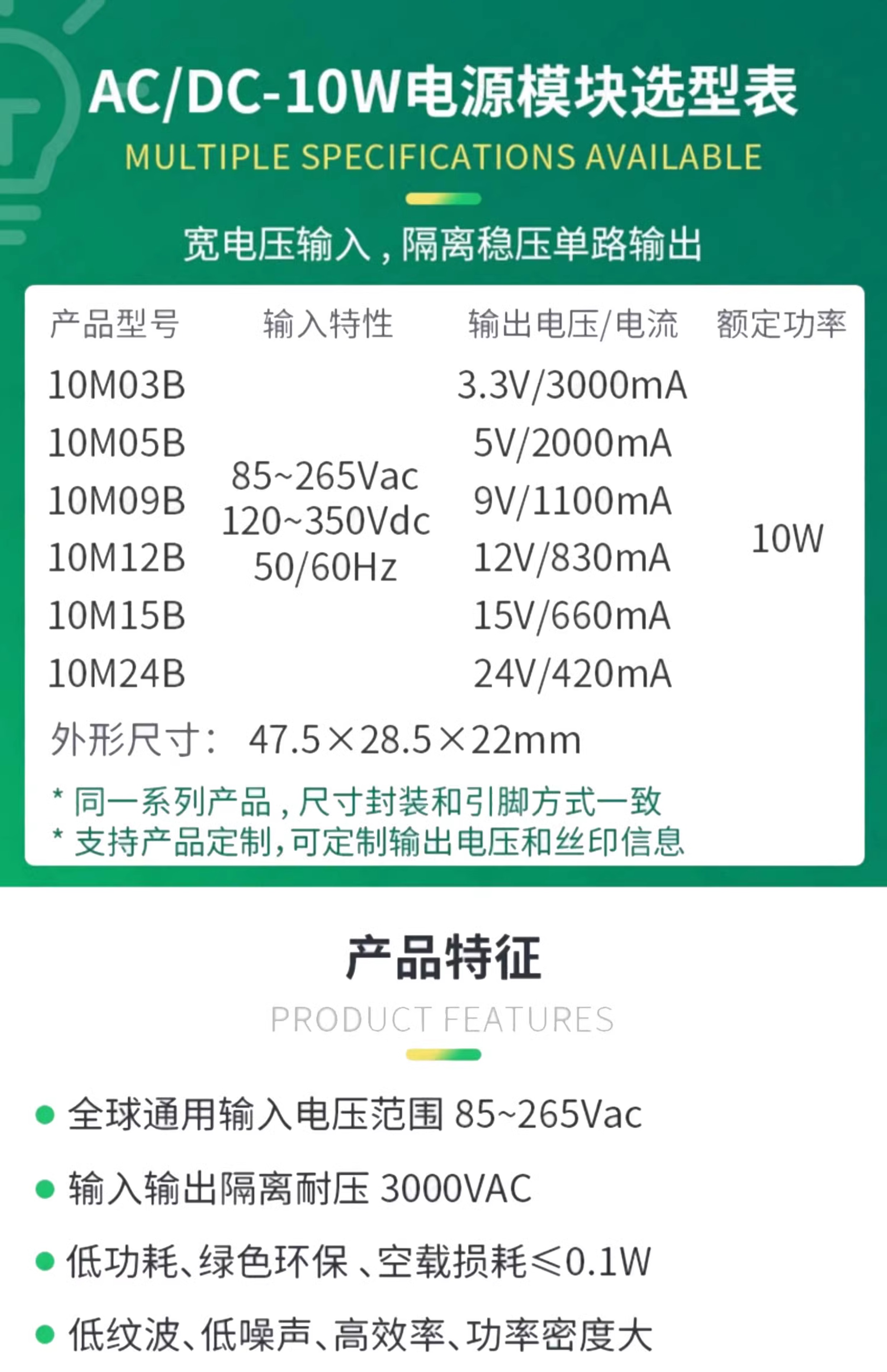 ACDC电源模块 | 10W 超小型系列模块电源 10M03B