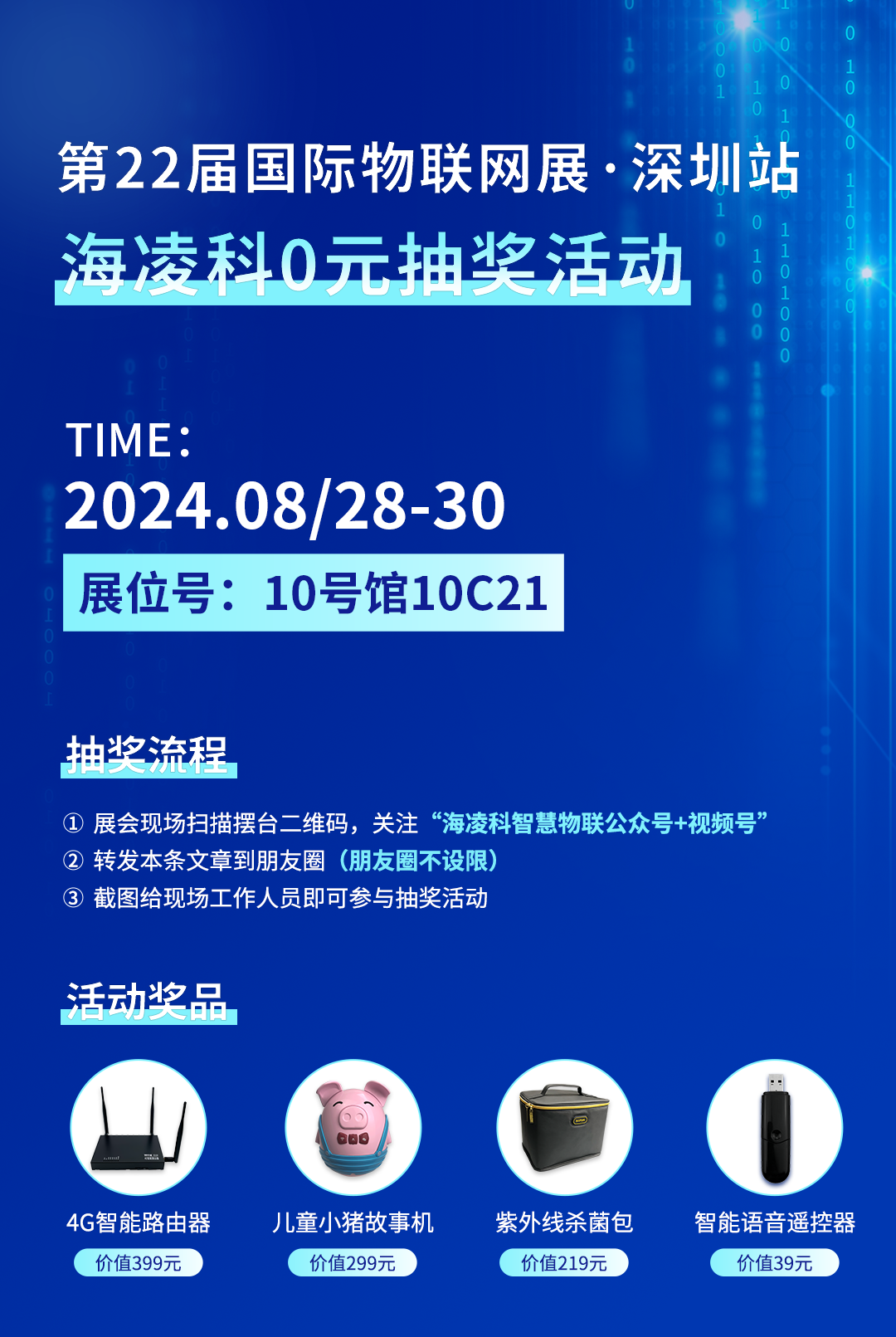 2024年8月28日至30日,IOTE深圳物联网展将在深圳国际会展中心(宝安)盛大举行。此次展会上,海凌科将展出包括通信、电源、传感等全系列产品方案,同时还有超多免费礼品相送,诚邀各位用户前来参展。