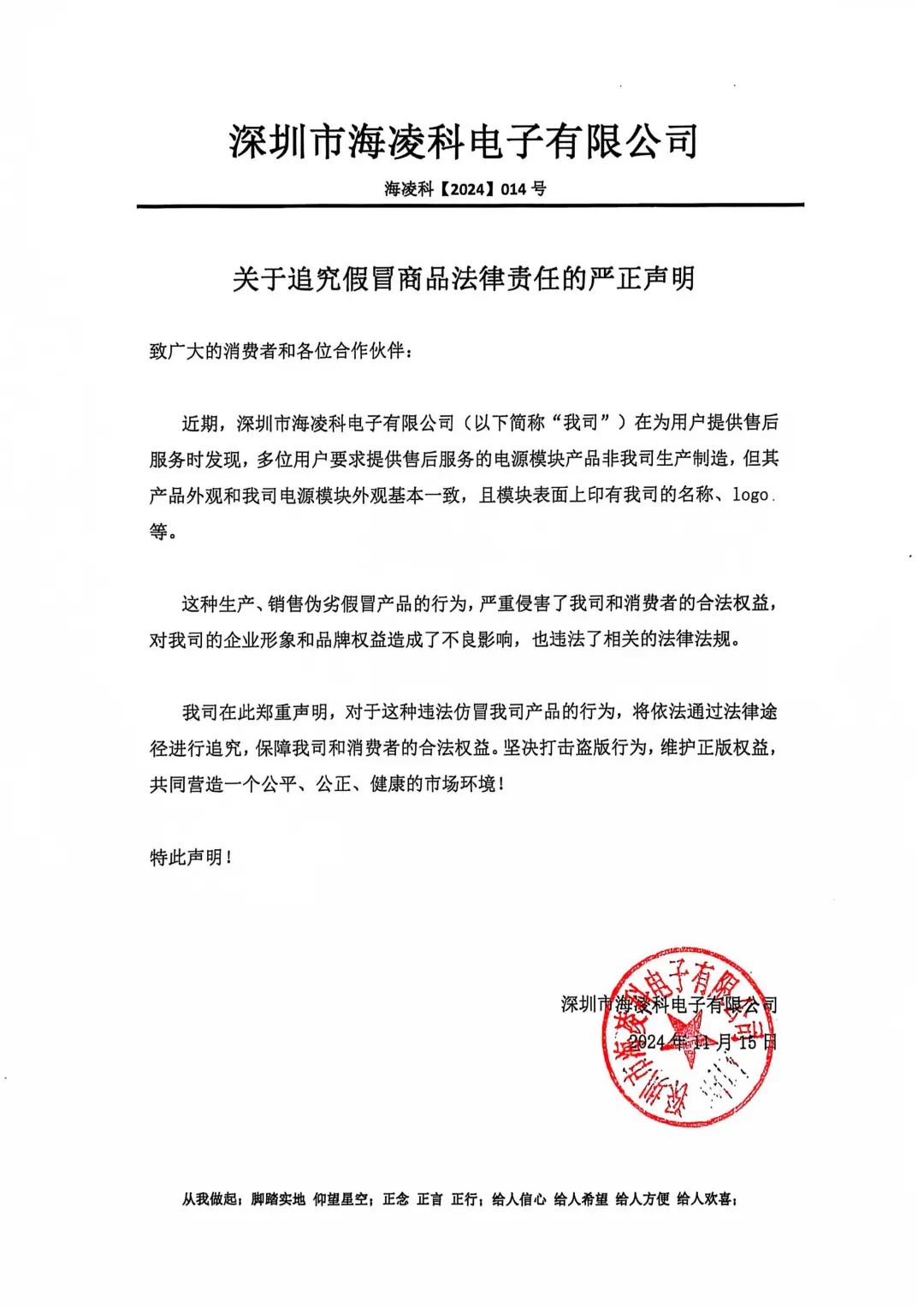 在此,海凌科再次提醒广大用户,为了保障您的安全和权益,请认准海凌科官方正版电源模块。如有任何疑问,欢迎随时联系我们获取更多信息。