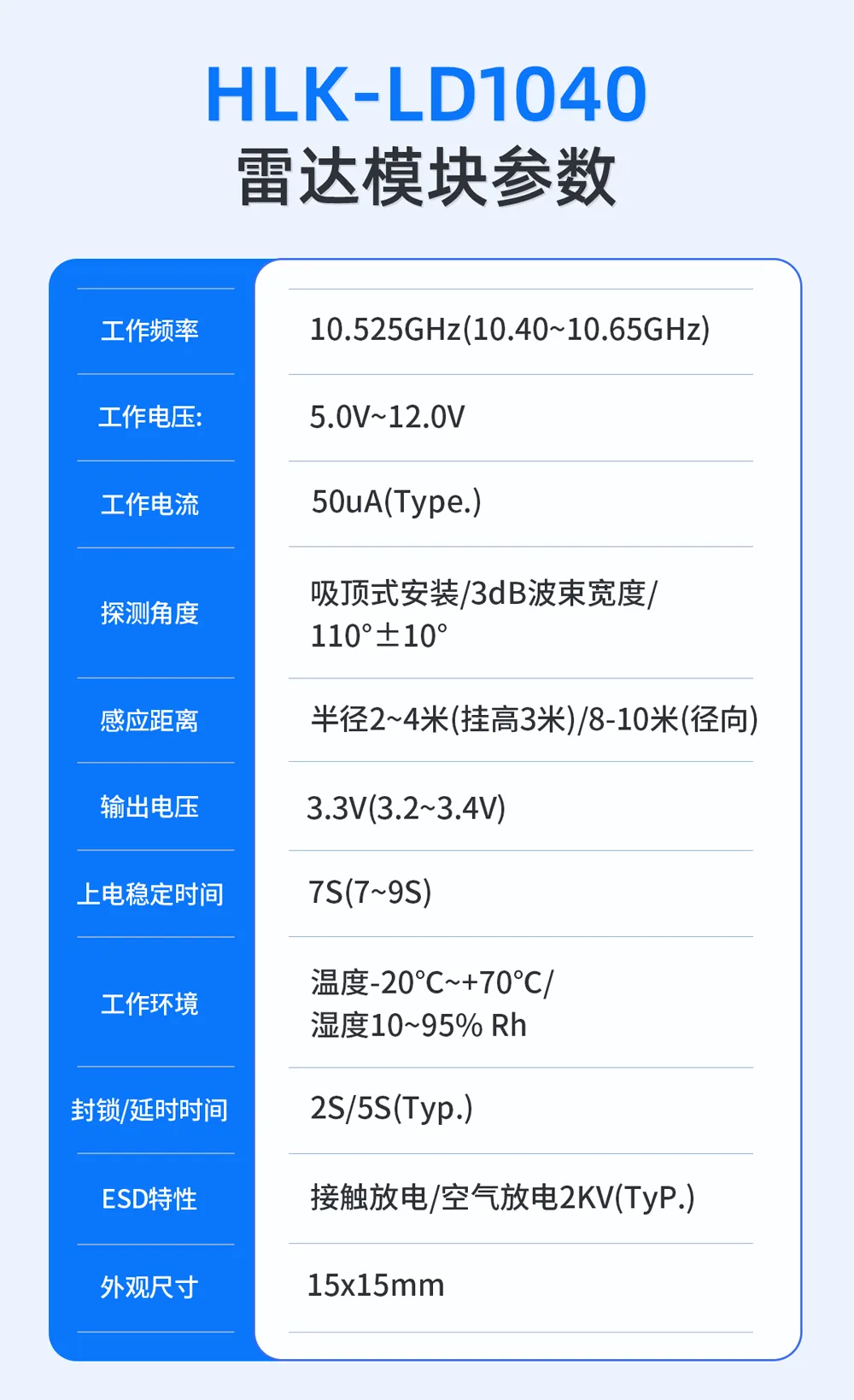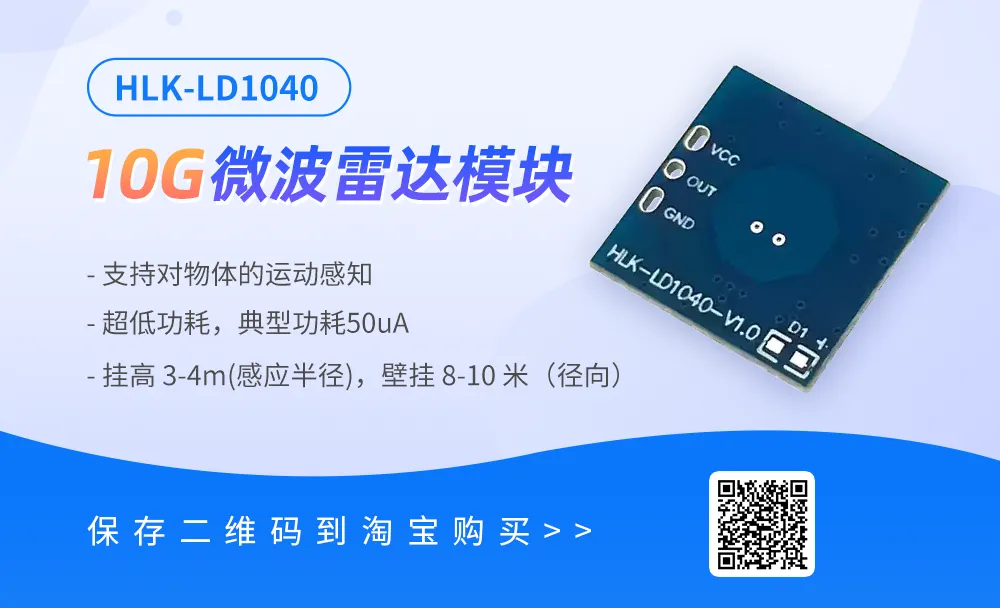 HLK-LD1040,超低单价3.5元左右,微安级超低功耗,感应距离可达8-10米,非常适用于智能家居、物联网、安防等场景。