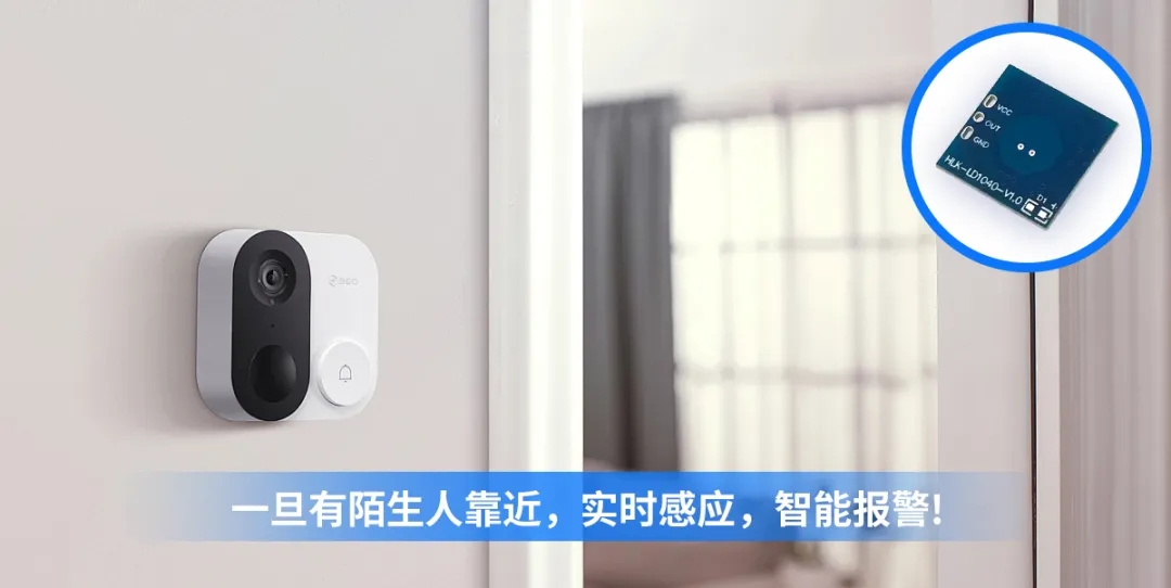 10G微波雷达模块HLK-LD1040实时监测家庭入口,一旦探测到陌生人靠近,立即触发警报并推送提醒,确保用户居住安全。