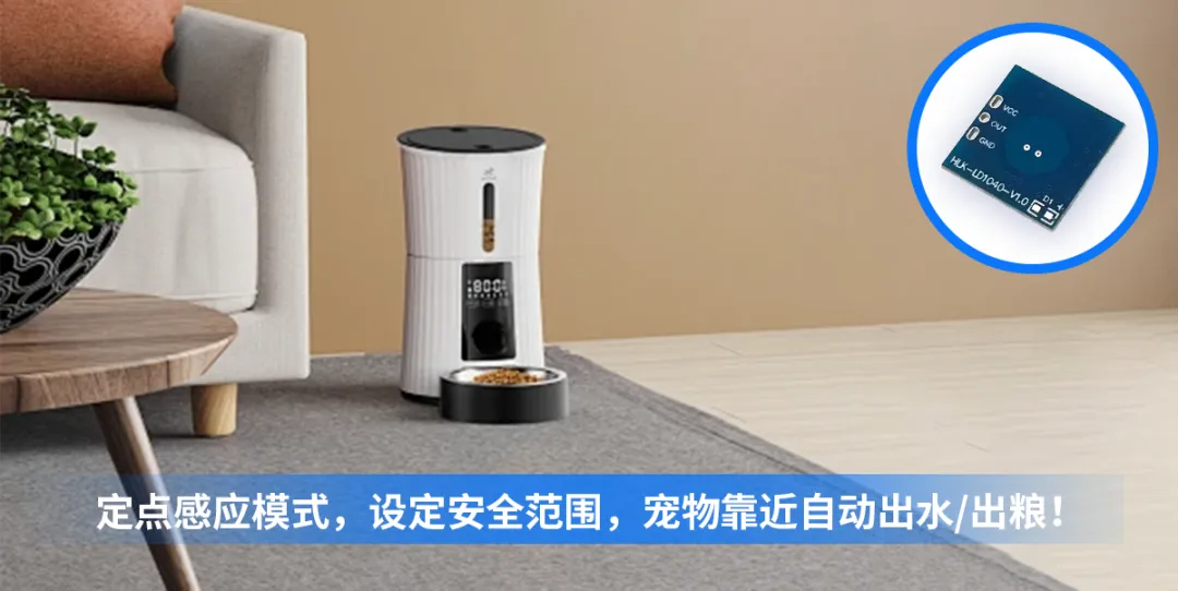 高灵敏度10G微波雷达模块HLK-LD1040,模块在感应到宠物后,自动智能出餐,更智能更科学更方便。